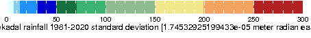∫dX [ Lesotho ENACTS ALL dekadal climatologies rfe_stddev ]: Dekadal rainfall 1981-2020 standard deviation data